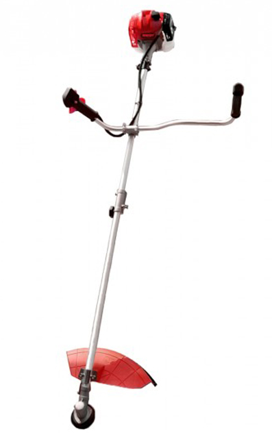 Stroj je vybavený kvalitným trojramenným kovovým kotúčom, ktorý si poradí i s hustým prerasteným porastom, problém mu nerobia ani mladé náletové dreviny. Nože môžete zameniť za dvojstrunovú poloautomatickú hlavu s odrezávačom struny - ak je struna opotrebovaná, stačí roztočenou strunovou hlavou poklepať o zem a struna sa automaticky predĺži. Odrezávač ju potom upraví na potrebnú dĺžku. Počas kosenia teda nemusíte neustále ručne strunu predlžovať. Strunovú hlavu oceníte predovšetkým pri konečnej úprave okolo záhonov, plotov, múrov, stromov a pod.