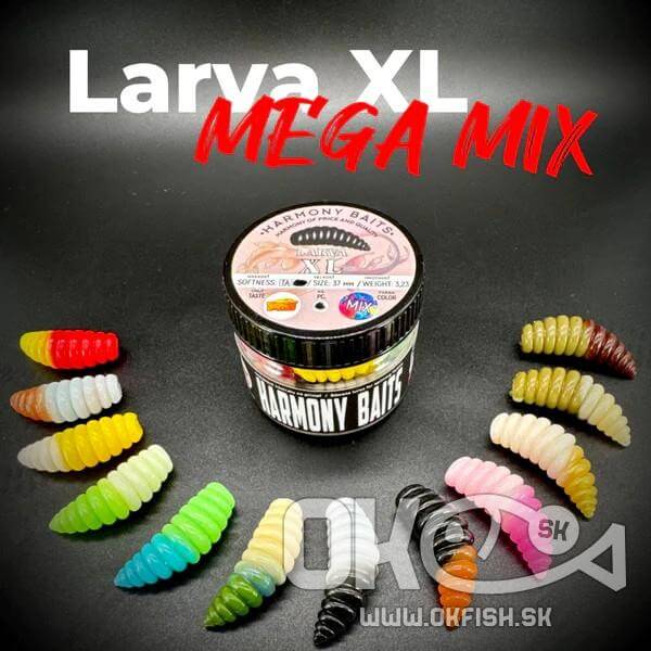 Larva XL svojím vzhľadom pripomína silikónovú larvu hmyzu. Vhodná na lov pstruhov a iných sladkovodných rýb. Momentálne je v edícii Mega Mix. Set Mega Mix obsahuje 12 kusov lariev, každá je v inej dvojfarebnej kombinácii.