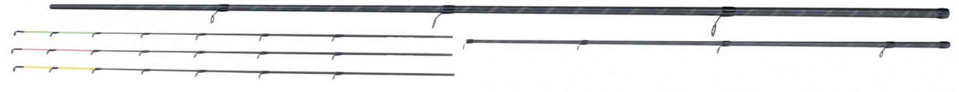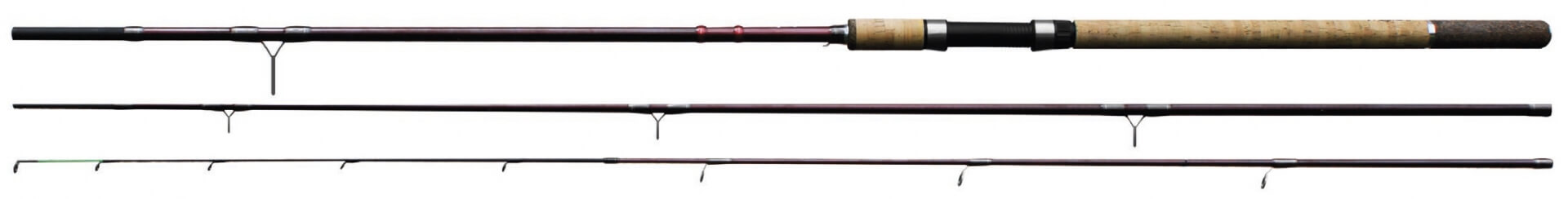 Najlepší feeder vo svojej triede s najodolnejším blankom! Robustný feederový prút najvyššej triedy s veľkou odolnosťou a silovými rezervami. Špeciálna konštrukcia blanku je extra zosilnená krížom vinutými uhlíkovými pásmi pre ďaleké nahodenia či zdolávanie trofejných rýb. Veľké očká napomáhajú dlhým nahodeniam a výborne fungujú pri love väčších rýb s použitím silnejších vlascov. Anatomicky tvarovaná korková rukoväť je zárukou pohodlného úchopu a príjemného zdolávania. Model s gramážou od 40-90 g má dĺžku 390 cm a transportú dĺžku 135 cm.