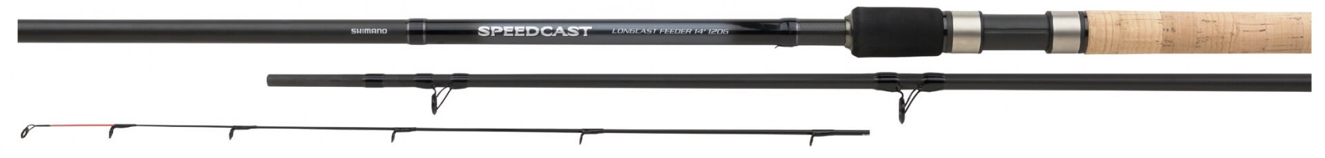 Nový rad prútov Shimano Speedcast Feeder pokrýva požiadavky všetkých feedrových spôsobov lovu od krátkych vzdialeností až po extrémne. Blank z kombinácie HPC200 a Biofibre má nový dizajn profilu. Speedcast Feeder je v porovnaní s väčšinou iných prútov oveľa tuhší v spodnej sekcii, takže má výrazne lepšie nahadzovacie vlastnosti, a to predovšetkým pri dlhých modeloch. Nerezové očká Fuji Alconite špičkovej kvality a sedlo navijaka Fuji DPS kombinované s jedinečnou zdolávacou akciou vytvárajú z prúta neprekonateľného favorita v konkurencii na trhu. Dlhšie, 4,20 m modely majú predĺženú rukoväť pre lepší prenos výkonu na páke a veľké očká na špičkách pre hladší chod vlasca. Model premennej dĺžky ponúka vysokú všestrannosť. Vrhacia záťaž: 90 g.