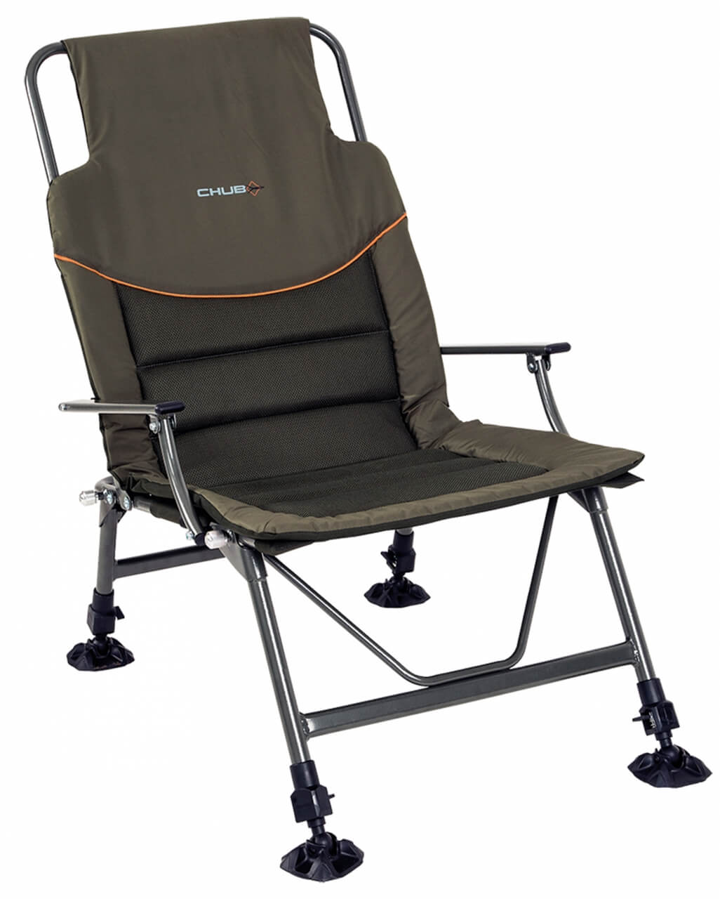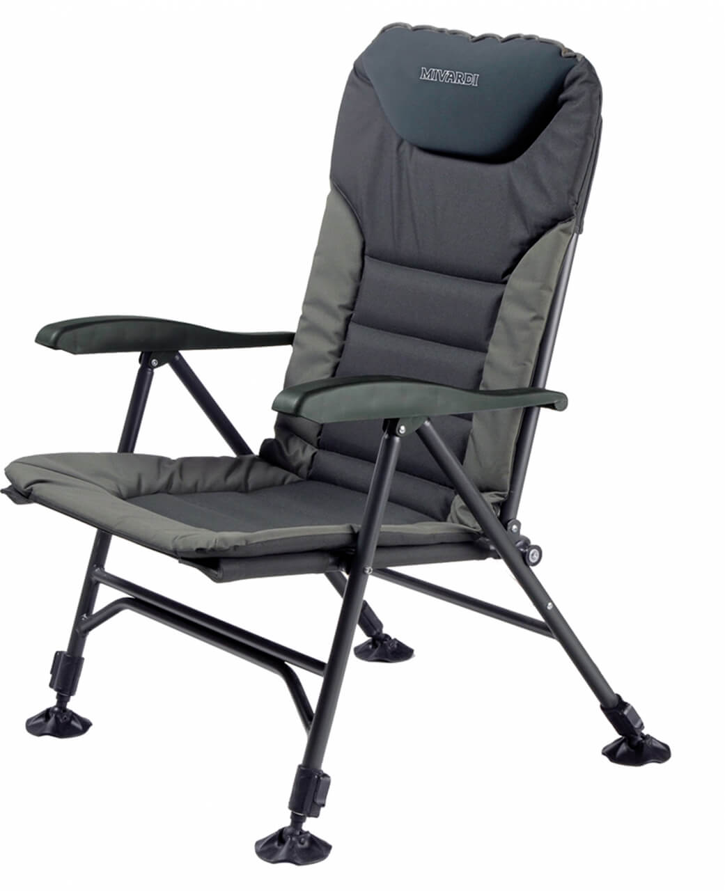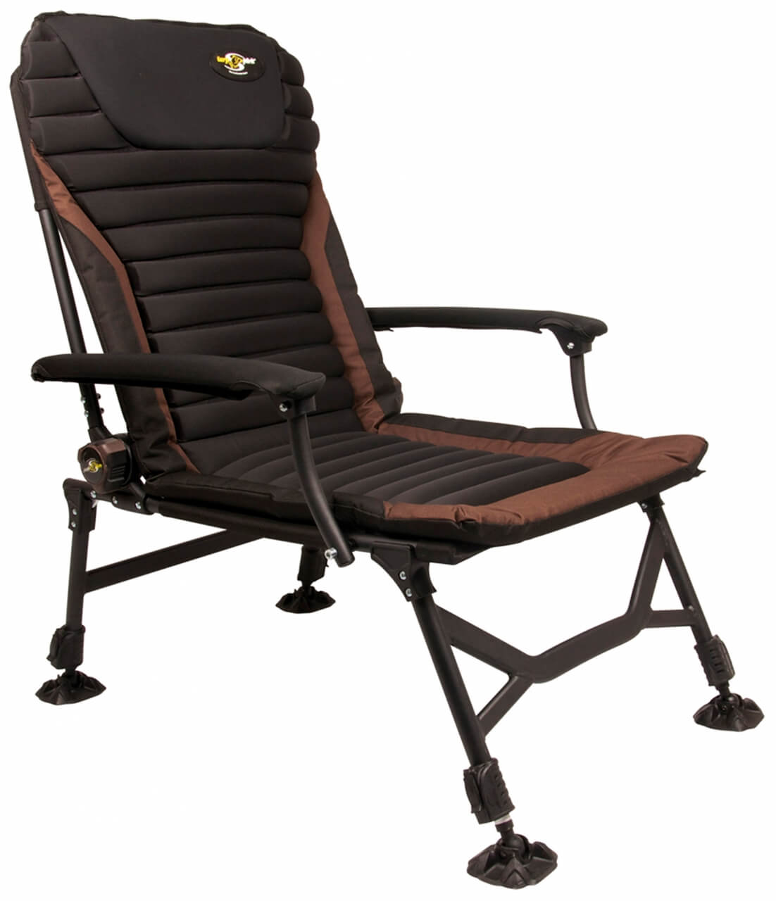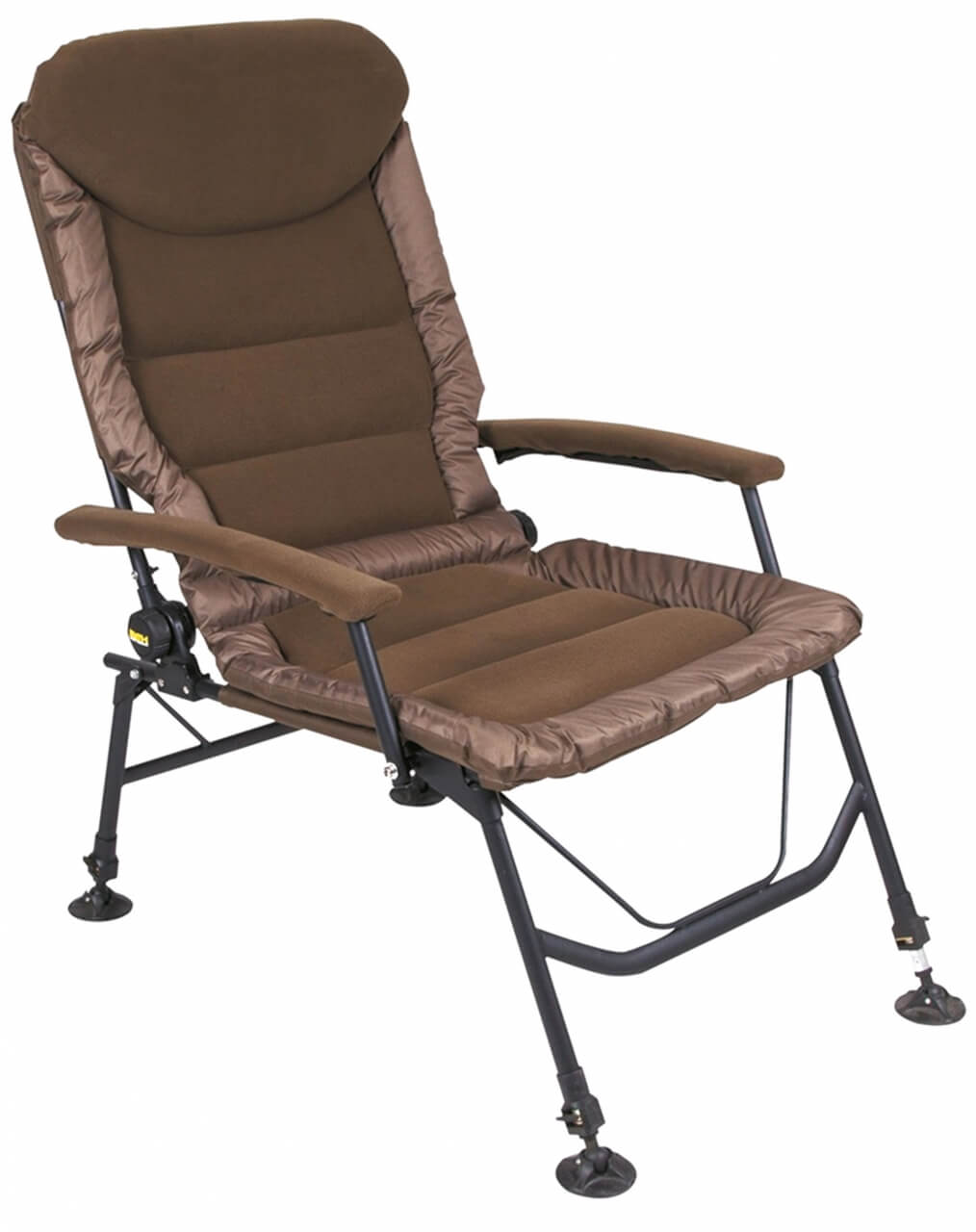 Kresielko s predĺženou opierkou chrbta, silným polstrovaním a potiahnutým fleecom pre maximálny komfort a pohodlie. Okraje sedadla sú vyrobené z odolnej, extra hrubej nylonovej tkaniny a polstrovanie má termo izolačné vlastnosti, ktoré vás ochráni pred chladom a vlhkom. Plne nastaviteľné zadné operadlo a lakťové opierky robia túto stoličku ideálnou pre dlhodobejší pobyt pri vode. Štyri výškovo nastaviteľné nohy s otočnými a veľkými pätkami zabraňujú zaboreniu do blata. Konštrukcia je z ľahkej, ale pevnej hliníkovej zliatiny so špeciálnou povrchovou úpravou v olivovej farbe. Použitý materiál polyester 600D je v spodnej časti potiahnutý nepriepustnou PVC vrstvou. V strednej časti sedadla je molitanová vrstva s hrúbkou 3 cm, ktorá je potiahnutá fleecom. Pod hlavou je komfortný vankúšik, ktorý umocní komfort a pohodlie. Rozmery sedadla: 51x64 cm. Výška operadla: 75 cm. Výška sedačky: 102 cm (+ 15 cm maximálne predĺženie nôh). Nosnosť do: 130 kg. Hmotnosť: 6,4 kg.