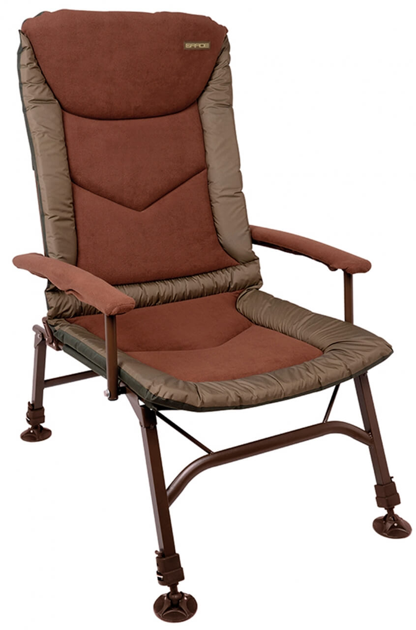 Priestranné kreslo Spro Grade Carp Throne s nastaviteľným chrbtom a pevnými podrúčkami s mäkkými rukávmi. Vyniká pevným „heavy duty“ rámom a extra vysokým chrbtom pre maximálne pohodlie. Nastaviteľný chrbtový systém je veľmi ľahko použiteľný. Kreslo je v dvojfarebnom vyhotovení, má nastaviteľné nohy s pätkami vhodnými do bahna. Rozmery: 93 x 68 cm.