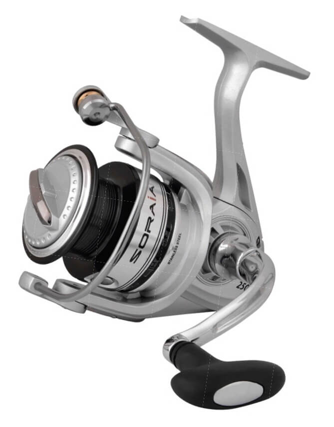 Soraia má karbónové telo a rotor, titánom pokrytú rolničku proti zarezávaniu splietanej šnúry, jemne nastaviteľnú multidiskovú brzdu. Preklápač je zhotovený z predimenzovaného hliníkového drôtu. Má 5 guľôčkových ložísk a 1 ihlové ložisko. Navijak je navrhnutý a vyrobený bez anti-reverse systému, aby bolo ich telo chránené proti soli, piesku a špine. Váži 294 gramov a má prevod 5,5:1.