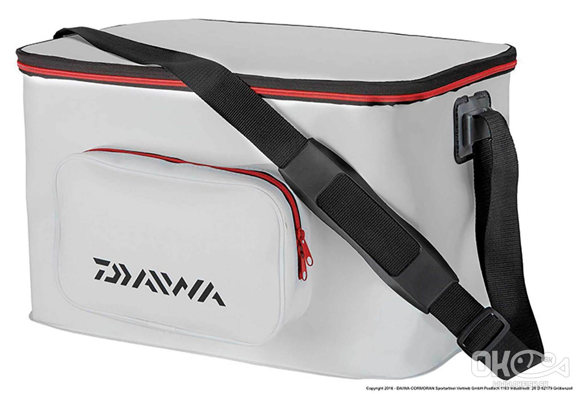 Praktická 100 % nepremokavá a vodotesná taška na rybárske vybavenie. Perfektná do lode, ale aj na nosenie po brehu. Praktické uši na prenášanie a veko uzatvárateľné na zips, nastaviteľný ramenný popruh. Vyrobená z pružného polyesterového materiálu, ktorý je prakticky nezničiteľný. Úplne nepremokavá, ľahko sa umýva. Má protišmykové nohy.