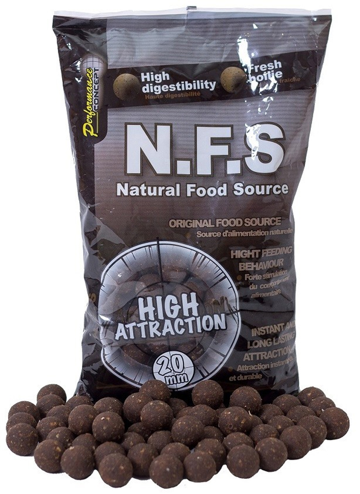 N.F.S. alebo prírodný zdroj potravy, je zložitý vzorec vysoko stráviteľných zložiek a odvodených jedál. N.F.S. je plný chrumkavých škrupinových zložiek, ktoré napodobňujú efekt prirodzenej potravy. Je plný rôznych prírodných surovín, ktoré pomôžu prirodzene dávkovať Amino zložky, ktoré sú pre kaprov neodolateľné.Vďaka svojej veľmi rýchlej stráviteľnosti N.F.S., nebude treba dlhšie kŕmenia, pretože reakcia kapra bude takmer okamžitá. Vo vode začne N.F.S. okamžite vysielať potravinové atraktory a príťažlivé 100% prírodné zložky. Prirodzená návnada, boilies N.F.S., je vhodné tak aj na dlhotrvajúce kampane.