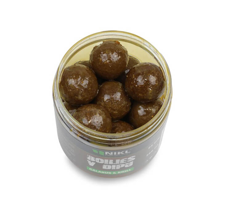 Hľadáte nástrahu, ktorá začne "strieľať" zábery okamžite po nahodení? Nikl Boilies v dipe Calanus & Krill je extrémne atraktívna nástraha určená na okamžité použitie. Každá guľôčka je v dóze doslova nasiaknutá silným tekutým dipom, ktorý sa po dopade do vody začne bleskovo uvoľňovať a vytvárať okolo vašej montáže neodolateľný oblak chutí a vôní.Okamžitý účinok vďaka sile kôrovcov
