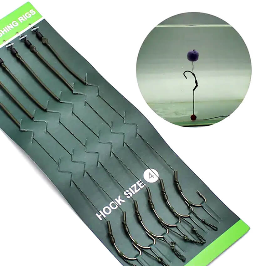 - Špičková šnúrka: Použitá pletená šnúra s nosnosťou prispôsobenou veľkosti háčika (20lb pre menšie, 25lb pre väčšie veľkosti) zvládne aj súboje s trofejnými kaprami.