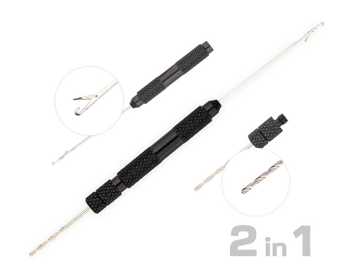 Dostať tvrdú nástrahu na vlasový nadväzec bez toho, aby praskla, vie byť občas poriadna výzva. S touto praktickou súpravou 2v1 to však zvládnete rýchlo, presne a bez zbytočnej námahy. Tento set je určený na jednoduchú prípravu a nastraženie nástrah, ako sú boilies, pelety alebo partikel.Sada obsahuje pevnú ihlu s háčikom na bezproblémové prevlečenie vlasového prívesu cez nástrahu a malý vrtáčik, ktorý slúži na predvŕtanie tých najtvrdších kúskov. Ergonomická kovová rukoväť s protišmykovou úpravou zaisťuje pevný úchop a plnú kontrolu nad prácou aj v prípade, že máte práve mokré alebo slizké ruky.