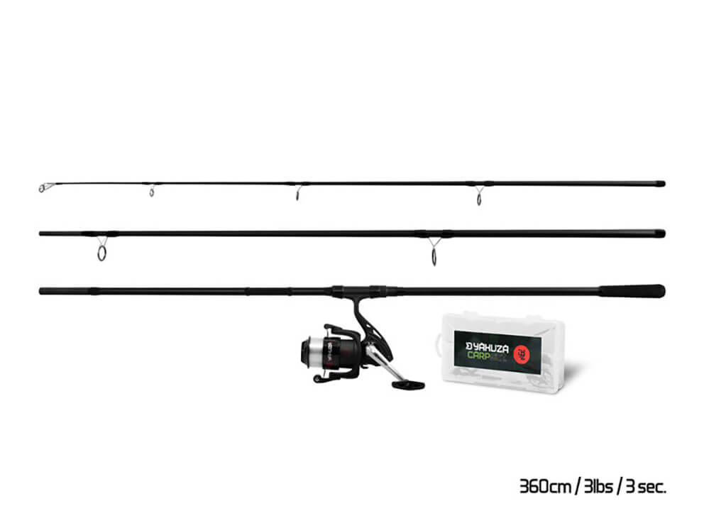 Základom setu je trojdielny prút YAKUZA s dĺžkou 360 cm a parabolickou akciou, ktorá zaručuje skvelý pôžitok pri zdolávaní menších rýb, ale zároveň poskytuje potrebnú silu na súboj s veľkými kaprami aj presné nahadzovanie na väčšiu vzdialenosť.