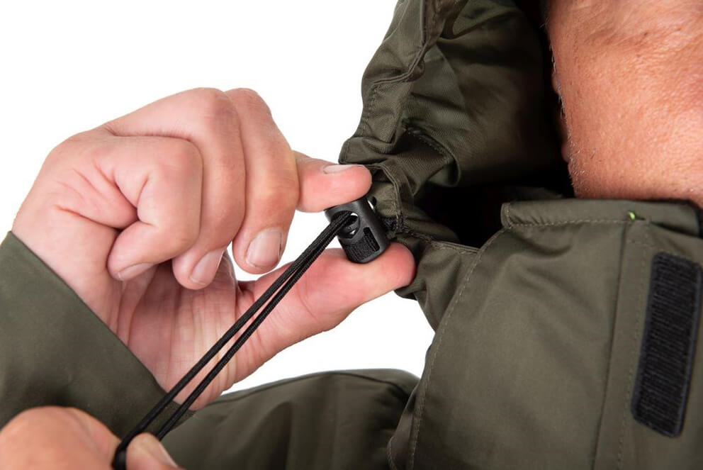 - FUNKČNÉ DETAILY: Odnímateľná kapucňa, fleecové vrecká na ruky so zipsom a nastaviteľné manžety na členkoch - všetko prispôsobené pre praktické použitie pri love.