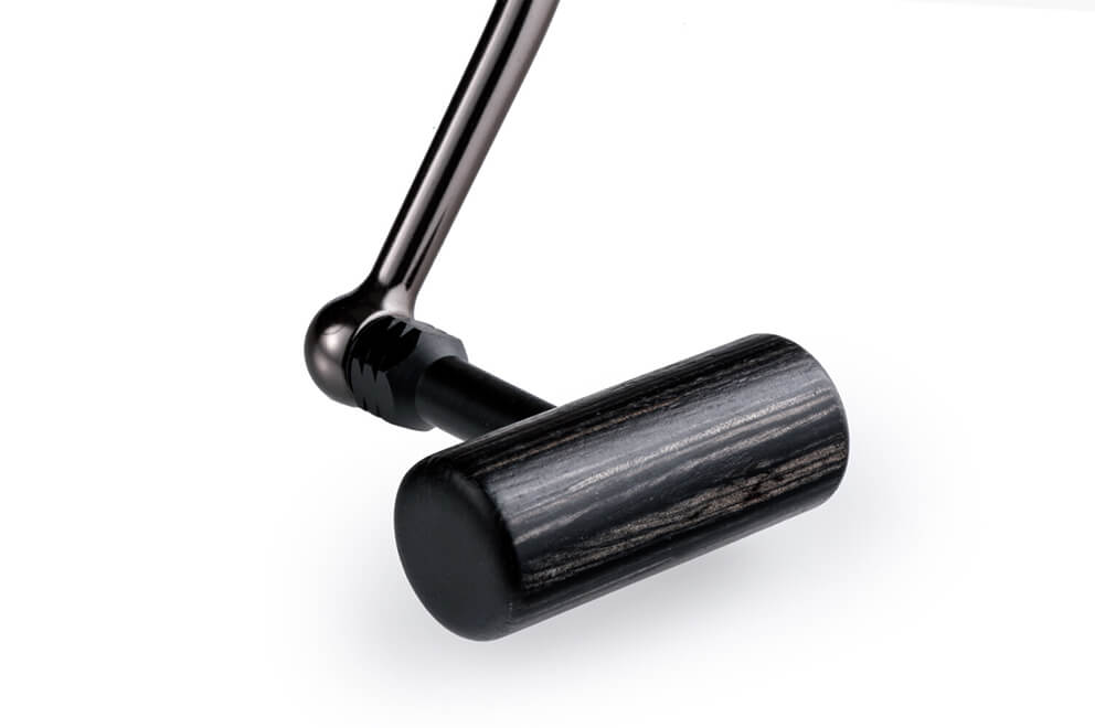 Čierne telo v kombinácii s cievkou v titanovej farbe s kávovým tónovaním a drevenou koncovkou kľučky dodávajú navijaku prémiový, minimalistický vzhľad.