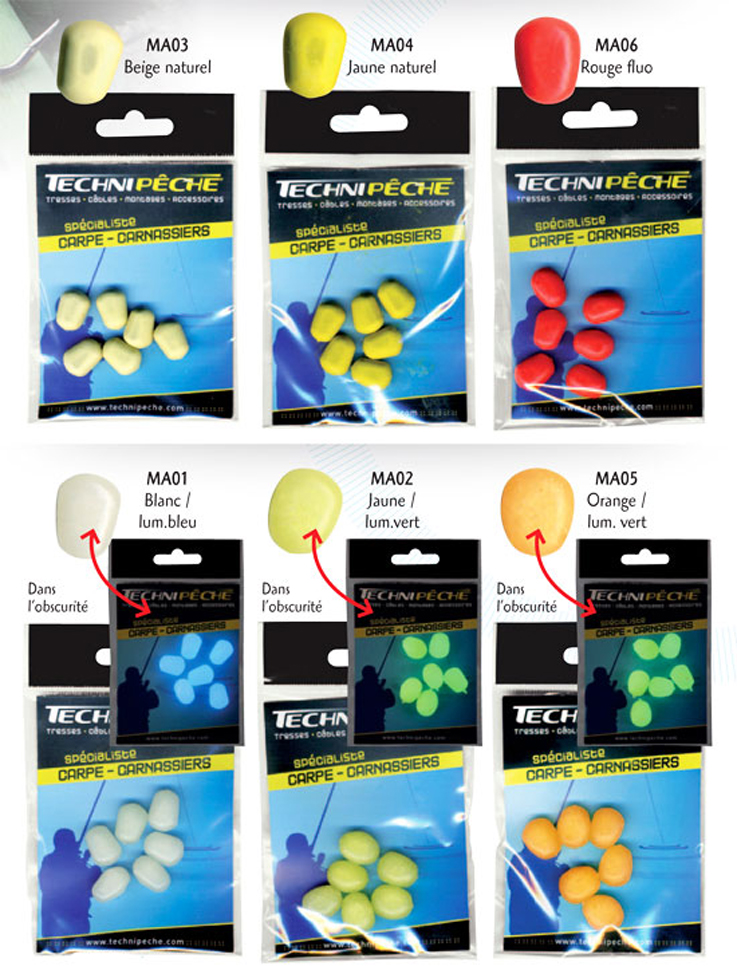 Plávajúca nástraha v tvare kukurice. TechniPeche ponúka opakovane použiteľné zrná v tvare kukurice v rôznych farbách a dokonca aj s luminiscenčným efektom v noci. Vyrobené z materiálu, ktorý nenájdete nikde. Použitá guma má bezchybnú kvalitu.