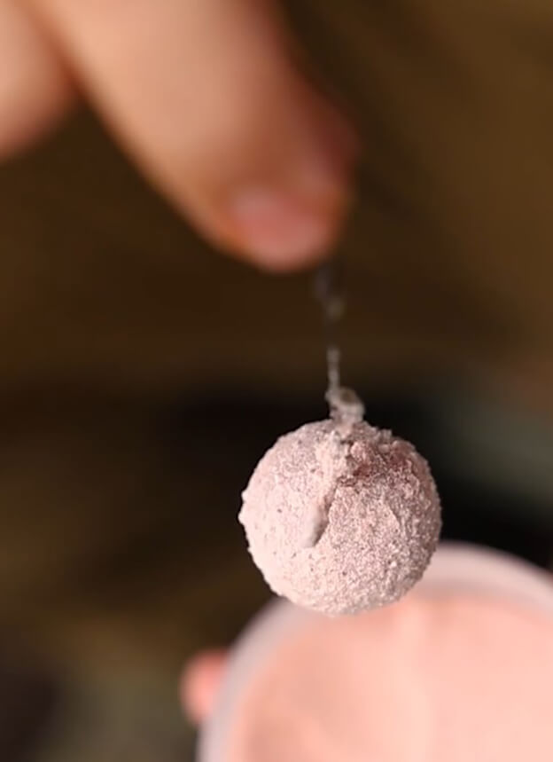 1. Nástrahu (boilies, peletu alebo Pop-up) krátko namočte do vody alebo ideálne do tekutej potravy Nikl Liquid Calanus.