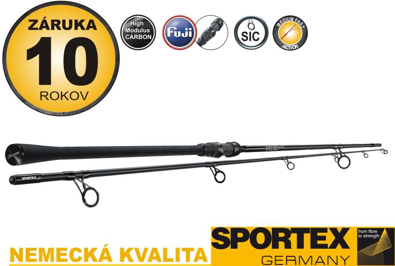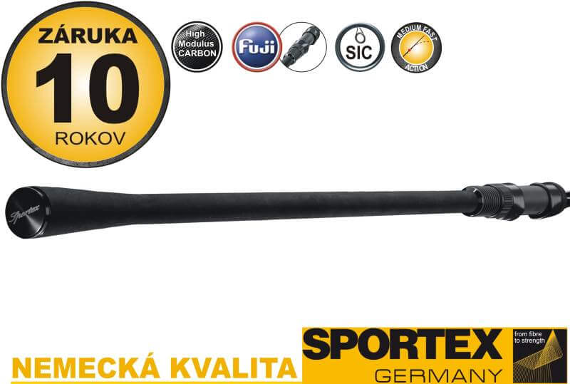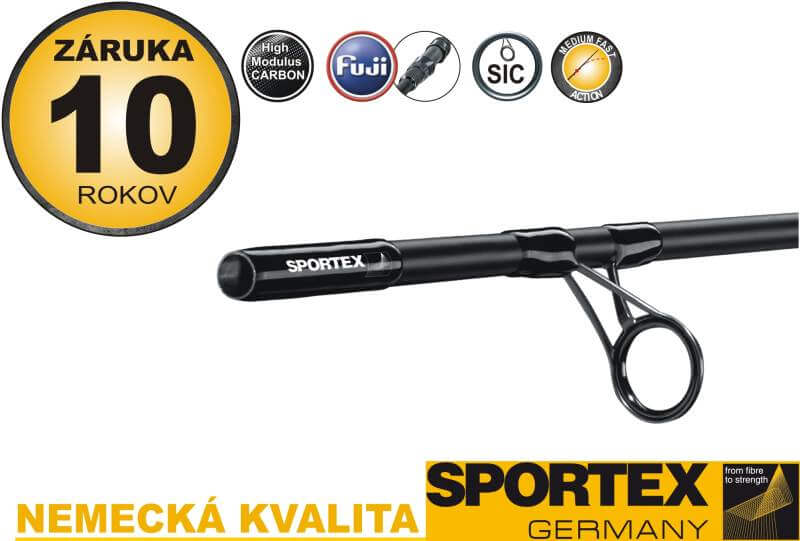 Výborný pre dlhé a presné hody. Špičkovo vybavený - Sic očká, Fuji sedlo navijaku a vysoko kvalitná Duplon rukoväť. Špička je dostatočne mäkká na to, aby spoľahlivo zachytila výpady rýb a eliminovala stratu úlovku.Dlhé roky považované zo špičiek medzi obľúbenými prútmi. SPORTEX prúty, to je tradícia, vývoj, kvalita a to najmä vďaka perfektnému dizajnu, vynikajúcimi hodnotami v akcii a ich funkčnosťami. Blanky sú vyrábané z vysoko kvalitných vlákien s vysokým obsahom HM (vysoko modulového) uhlíka alebo uhlíka zosilnenom kevlarovým HT - Cross vinutím. Vynikajúce vlastnosti blankov Sportex vyrábané priamo v Nemecku tvoria spolu s japonskými špičkovými výrobkami Fuji (očká, sedla, koncovky atď.) Dokonalé prúty, ktoré sú testované nielen odborníkmi, ale aj veľkým radom športových a rekreačných rybárov.