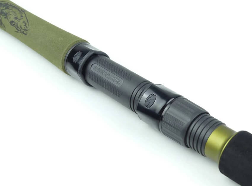 Prút je osadený odolnými očkami vhodnými pre použitie so silnými pletenými šnúrami a robustným navijakom. Pohodlná rukoväť zabezpečuje pevný úchop a maximálnu kontrolu nad prútom počas zdolávania.