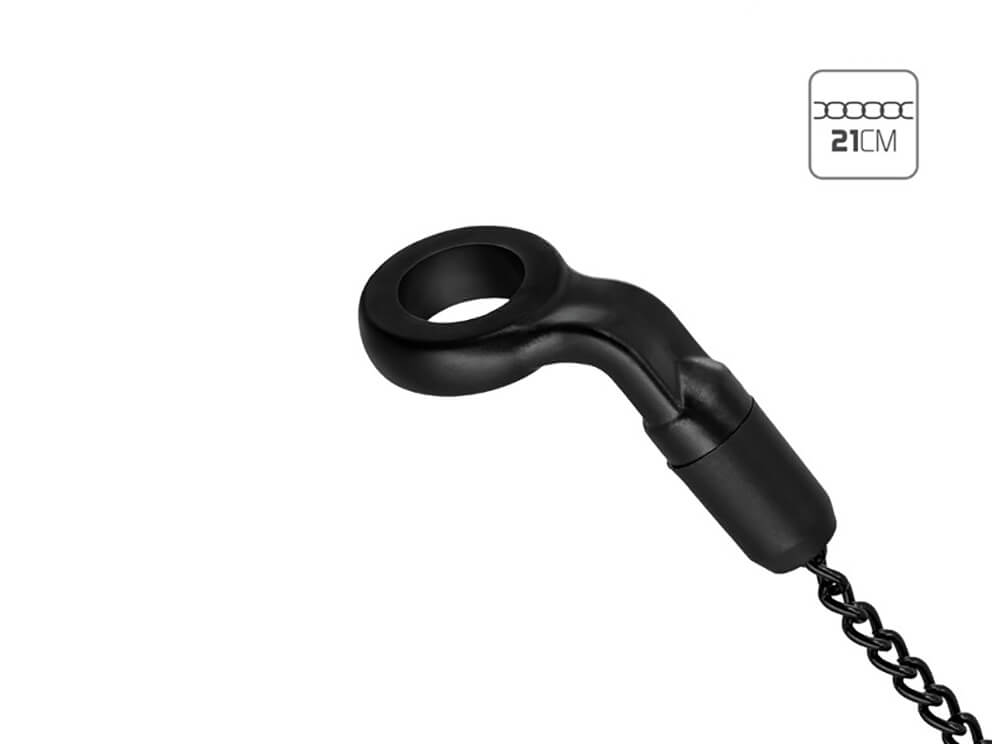 - Univerzálne uchytenie: Štýlová čierna retiazka je ukončená očkom, ktoré pasuje na všetky štandardné závity signalizátorov na hrazdách či rázsoškách.