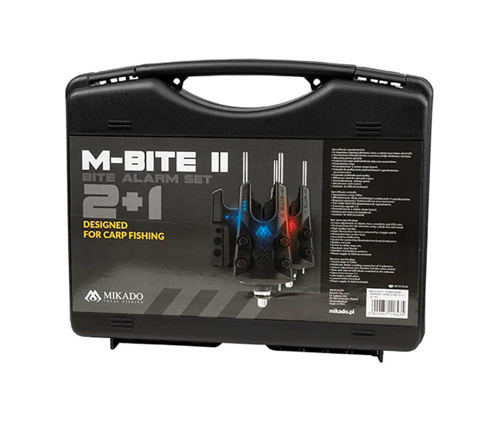 Mikado M-Bite II (Set 2+1) - Špičková signalizácia v modernom balení.Posuňte svoj lov kaprov na novú úroveň s vylepšenou sadou signalizátorov M-Bite II. Táto druhá generácia obľúbených hlásičov od Mikado prináša nielen väčší dosah a vyššiu odolnosť, ale predovšetkým maximálnu prispôsobivosť. Vďaka praktickým otočným ovládačom si všetko nastavíte behom sekundy - priamo v teréne a bez zložitého klikania v menu.