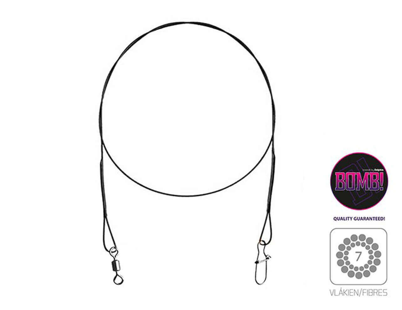 Titánové lanko DELPHIN 1x7 BOMB! s obratlíkom a karabínkou., popis